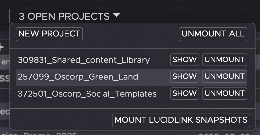 Take immediate control of your projects with the brand-new project widget. Get an at-a-glance overview of all mounted projects and instantly unmount them individually or all at once with a single click. This powerful new tool optimizes your project management, saving you valuable time and keeping your workspace perfectly organized.