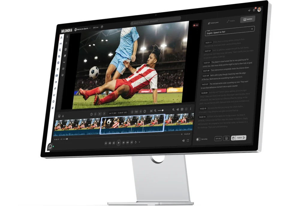 With Wildmoka’s AI-powered media engine, you can instantly clip, stream, and distribute content through personalized, automated workflows.