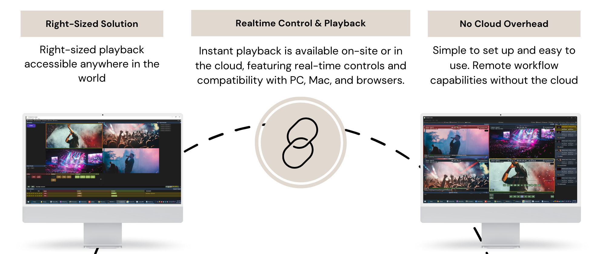 Cinedeck caters to an array of workflows, encompassing live events, studio multicam, archival projects, and beyond. Infuse innovation, dependability, and redundancy into each unique application. See the workflows below.