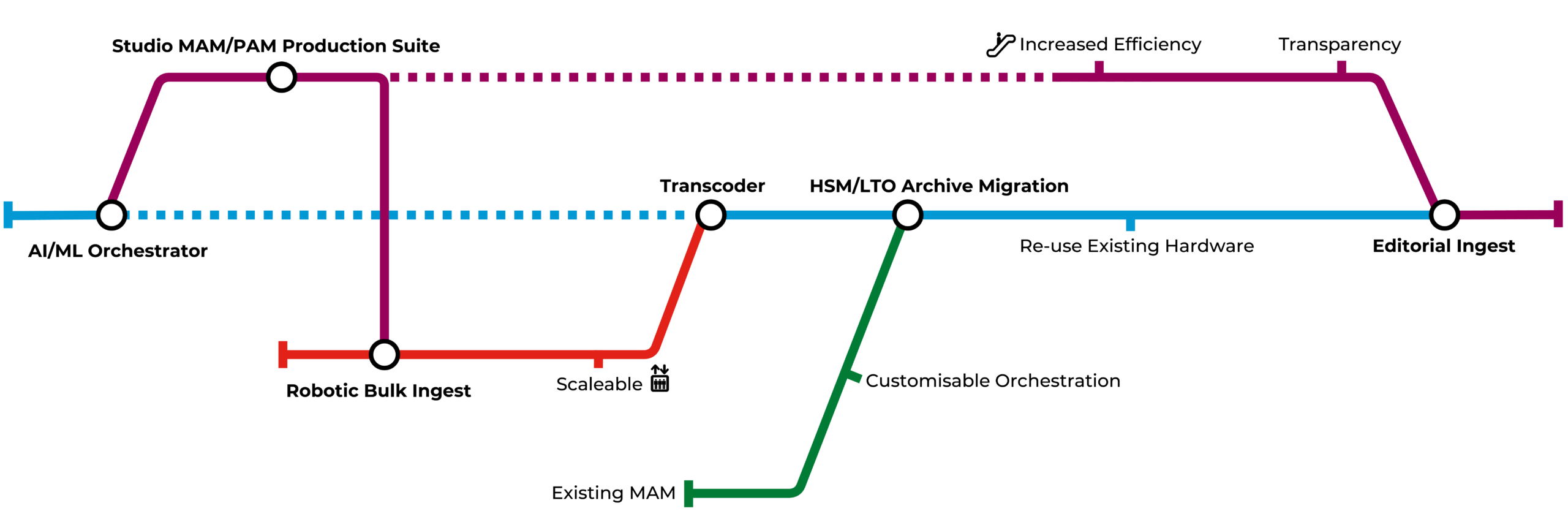 Easily track, orchestrate and automate content/workflows based on common studio requirements.From capture & creation, augmentation, edit, review and approve, distribution and archive.