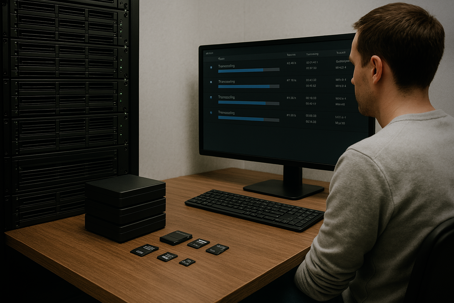 Intelligent, orchestrated multi-node transcode solution designed to support transcoding, upscaling, packaging and distribution of content for a wide range of use cases. Uses asset metadata to inform transcode decisions.