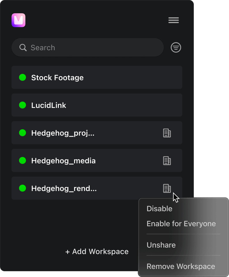 Simultaneously use any type of storage in MC, while also using a NEXIS. Mix a NEXIS with a NAS, or go hybrid by adding Suite or LucidLink to the mix, or do both – all at the same time. Put your bins on one share, media on the other. Put your DNxHD on a slow NAS, and DNxHR on a fast one. Also available for Facilis!
