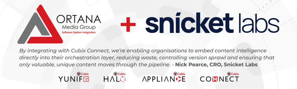 “Cubix Connect is all about giving customers real control in complex environments, not just connecting systems, but making them work smarter together. Bringing Snicket Labs into the ecosystem adds an intelligent layer that helps customers actively refine and optimise their content as it moves through automated workflows. It’s about turning orchestration into optimisation, reducing unnecessary storage, streamlining operations and helping organisations run leaner, more efficient infrastructures.” – Simon Harper – Channel & Partner Manager – Ortana Media Group