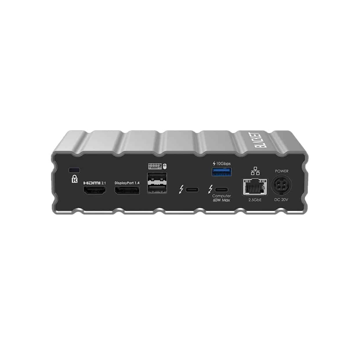 The RX-4 is a docking station that utilizes the large bandwidth 40Gbps of Thunderbolt™ 4, which allows you to expand the connectivity options of your computer by providing 17 ports for various devices. It connects to your computer via a single Thunderbolt 4 cable and offers a variety of ports, including four USB-C 3.2 Gen 2 ports, three USB-A 3.2 Gen 2 ports, two Thunderbolt 4 ports, a 2.5Gbe Ethernet port, an HDMI 2.1 port, and a DisplayPort 1.4.