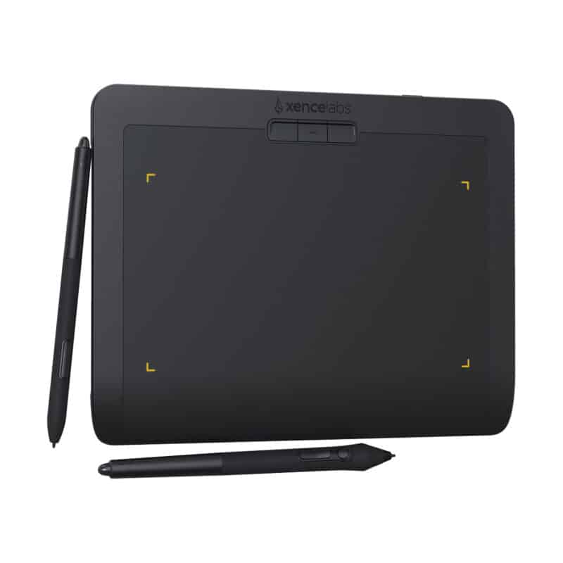 A quality drawing experience starts with a quality tablet. This begins where the pen meets the tablet. With more sensitivity than leading competitors, you can make and control the lightest strokes. Xencelabs Pen Tablets also includes one-button access for pen pressure curve controls, which allows you to adjust your pen’s sensitivity for even the heaviest hand. Two different sized pens come standard with the Pen Tablet Small, and both are fully customizable to the user’s workflow. The wider barreled 3 Button Pen has three programmable buttons plus an eraser to transform this pen into a fully customized tool. The smaller barreled Thin Pen handles like your favorite pen or pencil and has two assignable buttons and an eraser. The tablet features a seamless and gently curved palm rest to maximize comfort, as well adjustable LED lights, which help define the active drawing area. Xencelabs drawing surface aspect ratio is 16:9 native, which means it maps exactly to most industry-standard monitors out of the box. So if you were to draw a perfect circle on a Xencelabs tablet, you’ll get a perfect circle on the screen. The Pen Tablet Small ships with a protective carrying case for the tablet and all of the included accessories; a drawing glove, USB cables, and a pen case that contains both digital pens, USB dongle, USB adapter, nibs, and nib extractor.