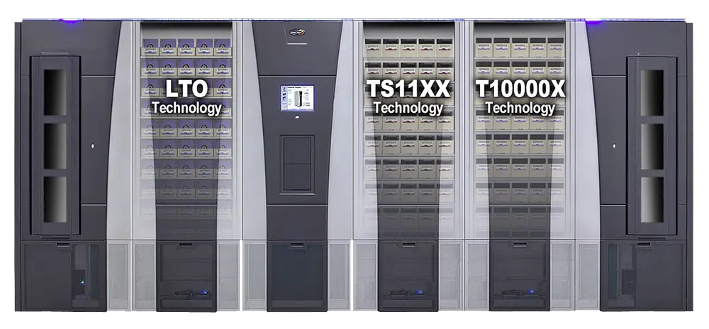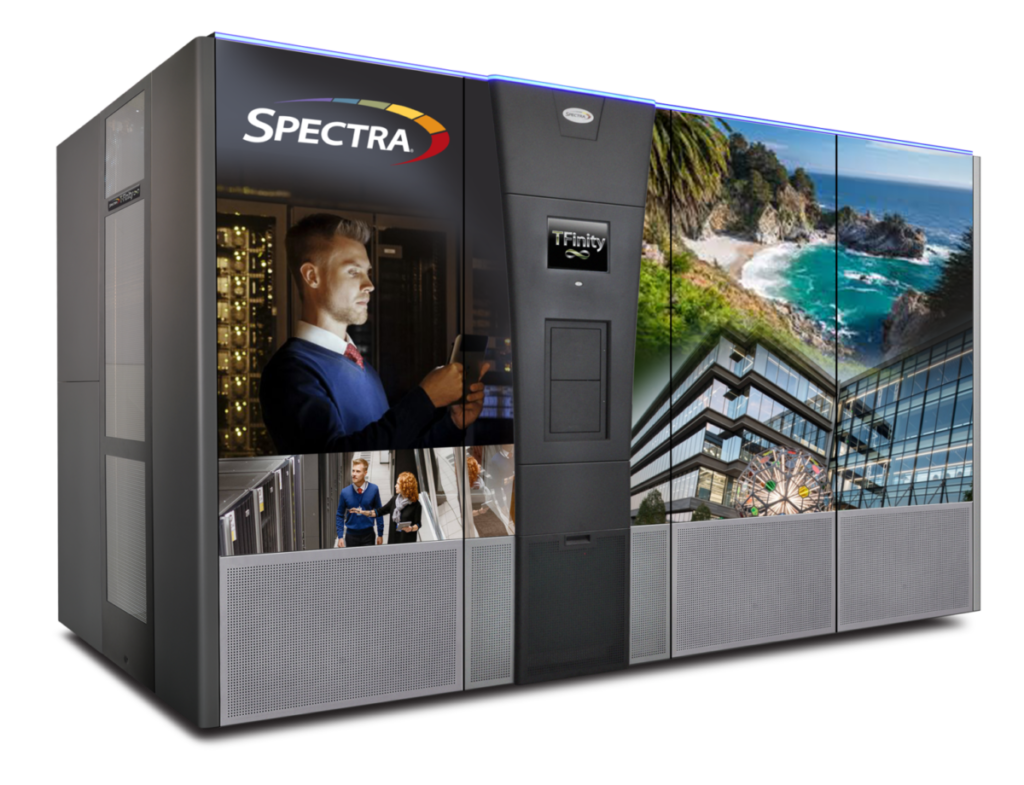 Packaged into the smallest footprint of any enterprise library, Spectra TFinity libraries deliver industry-leading scalability with the performance to satisfy even the most demanding environments. TFinity libraries also offer tri-media capability – the unique ability to intermix LTO, IBM TS11XX and Oracle T10000 tape drives and media within a single library – enabling flexible migration options between tape drive types & generations.